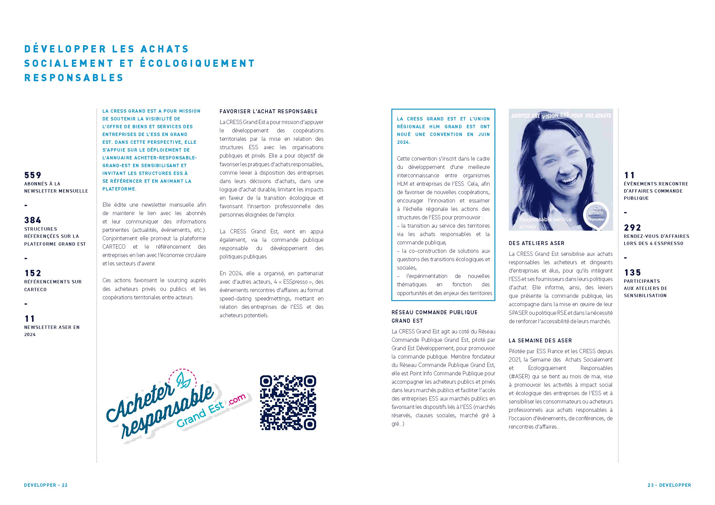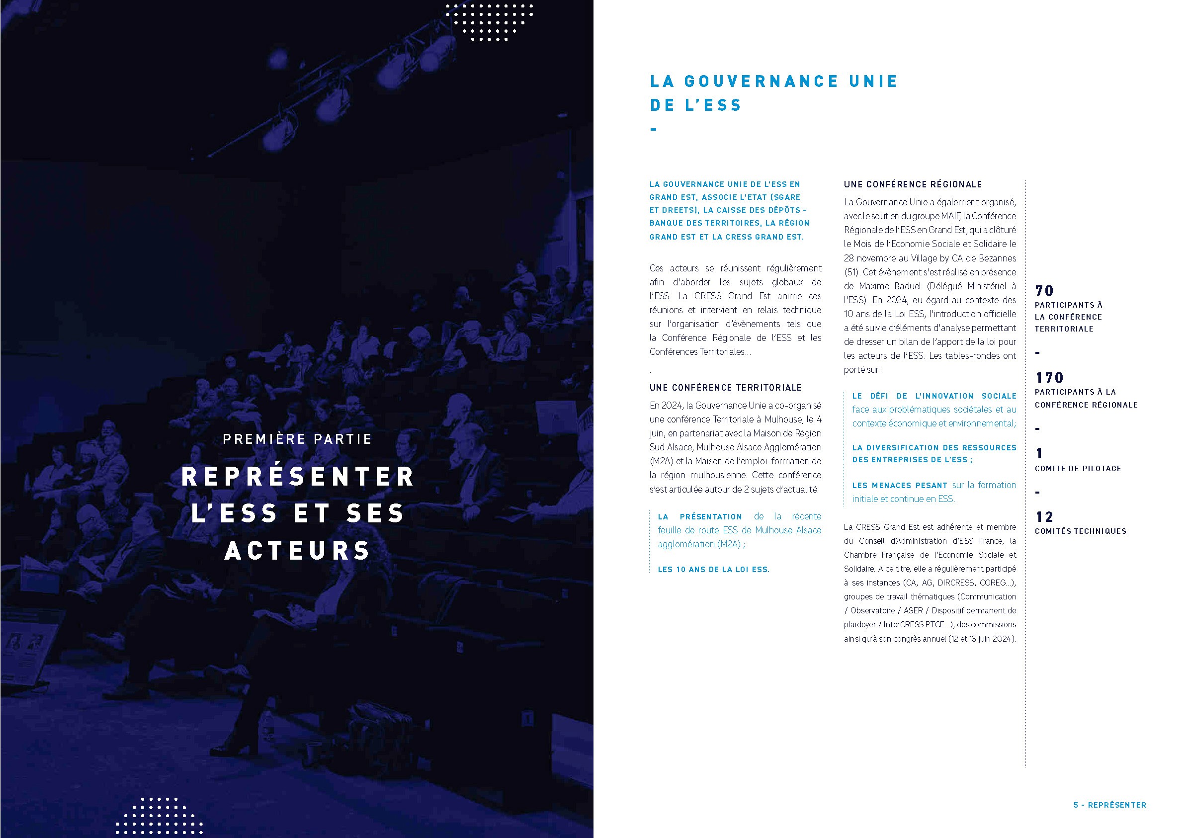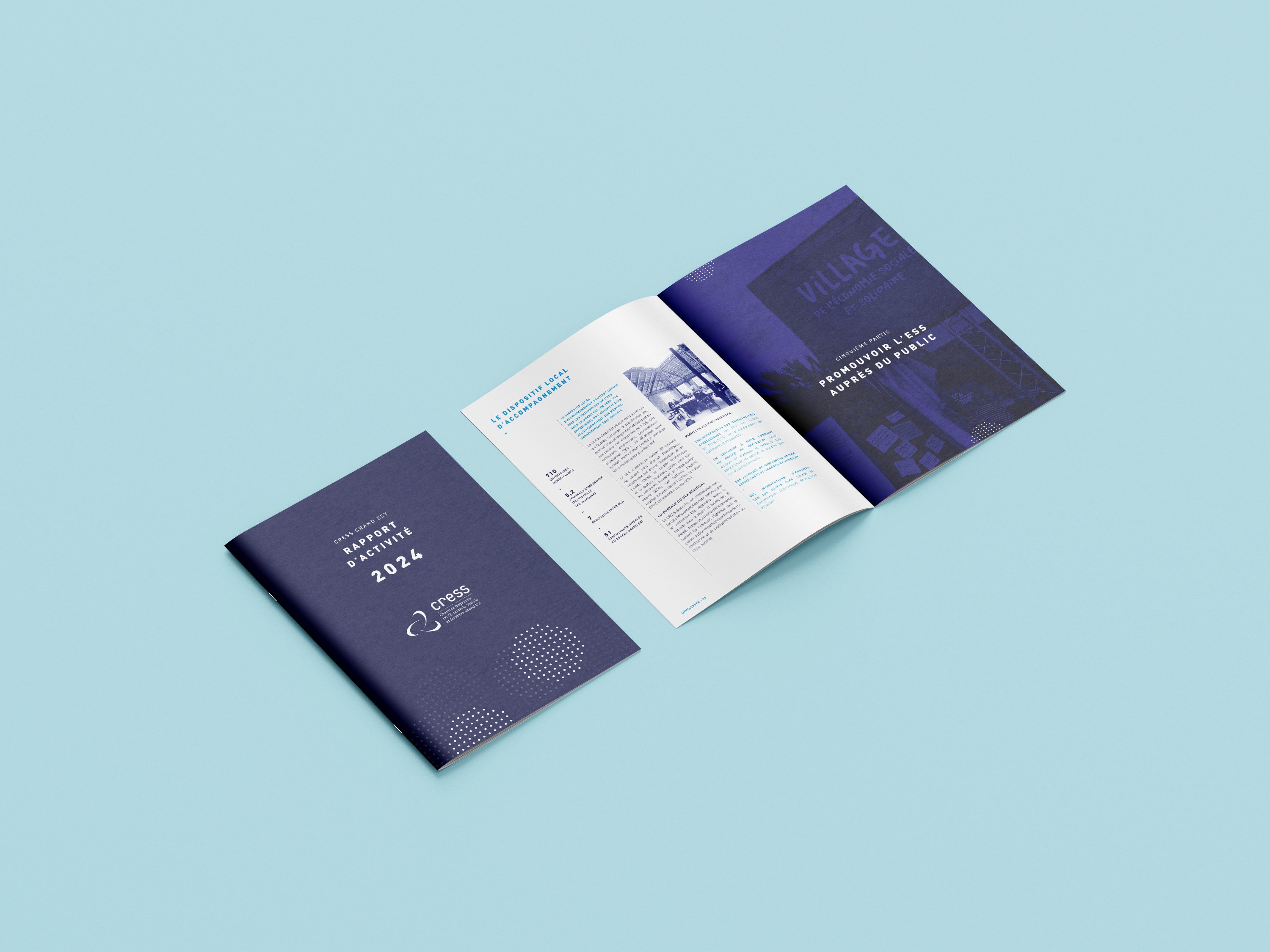 La Chambre Régionale de l'Économie Sociale et Solidaire en Grand Est (CRESS GE) porte divers dispositifs d'actions en faveur des entreprises de l'ESS et ce à différents niveaux. Chaque année la CRESS GE doit réaliser un rapport d'activité mettant en valeur le travail des divers dispositifs et salariés associés au travers de photos, data ou évènements. Présenter lors de l'assemblée générale, il a pour mission d'appuyer l'activité de la chambre ainsi que de renforcer son rôle institutionnel